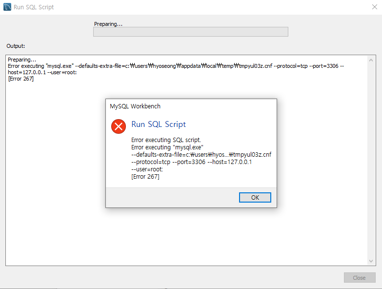 [Mysql] Run SQL Script 267 error 해결방법 본문